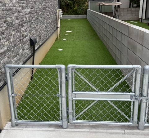 ▼ 芝のお庭と相性が抜群のPCフェンスが開放的で爽やかな空間を作り上げております。