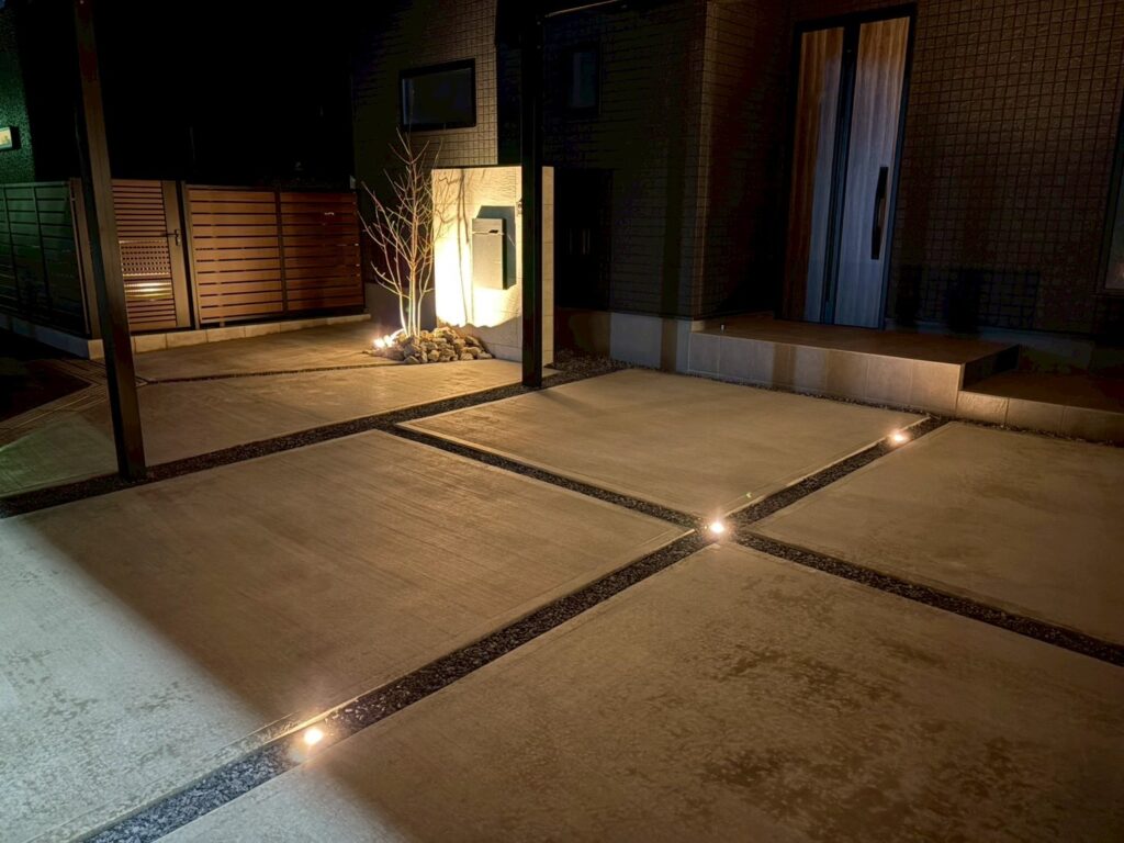 夜の外構にも高いデザイン性と安心が生れました。