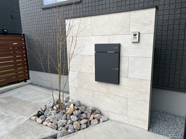 お家と同じ色合いでまとめられた、上品で落ち着きのある外構です。