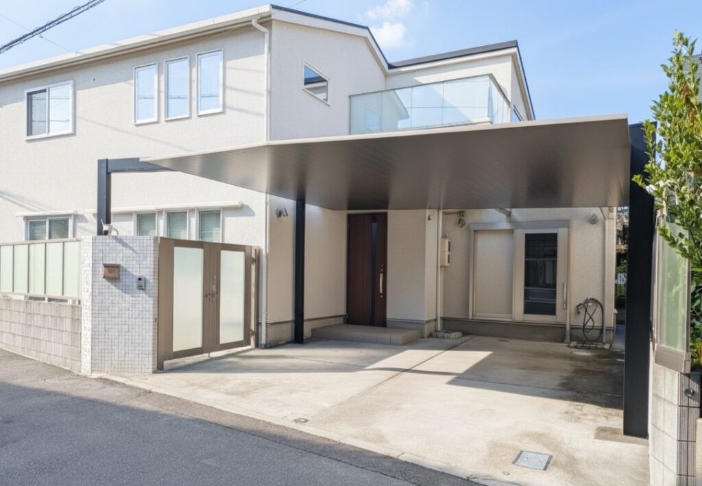 また、ツートンカラーのカーポートが白い外壁で爽やかな雰囲気の住宅空間に、